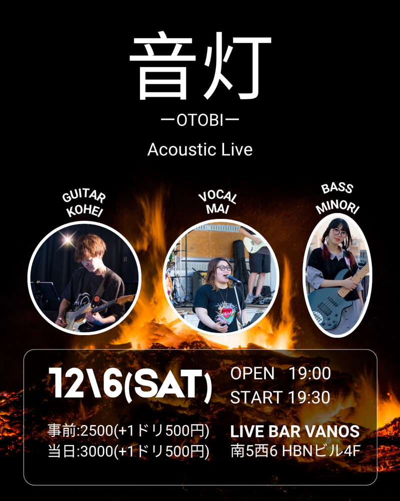 音灯-OTOBI- SCHEDULE 2025/12/06(土) LIVE Bar VANOS 地図を表示 open19:00/start19:30 出演者:Vo.MAI/Gt.後藤亘平/Ba.きたむらみのり VoiceLabo講師陣によるプチワンマンライブ開催!! 一度は耳にした事があるような名曲をカバー🎤🎸 ご予約は各出演者またはVoiceLaboまで!! URLをコピーする 報告する
